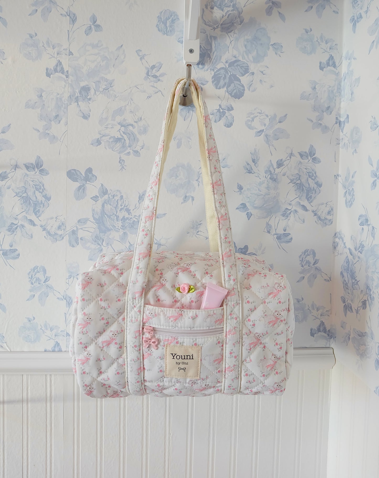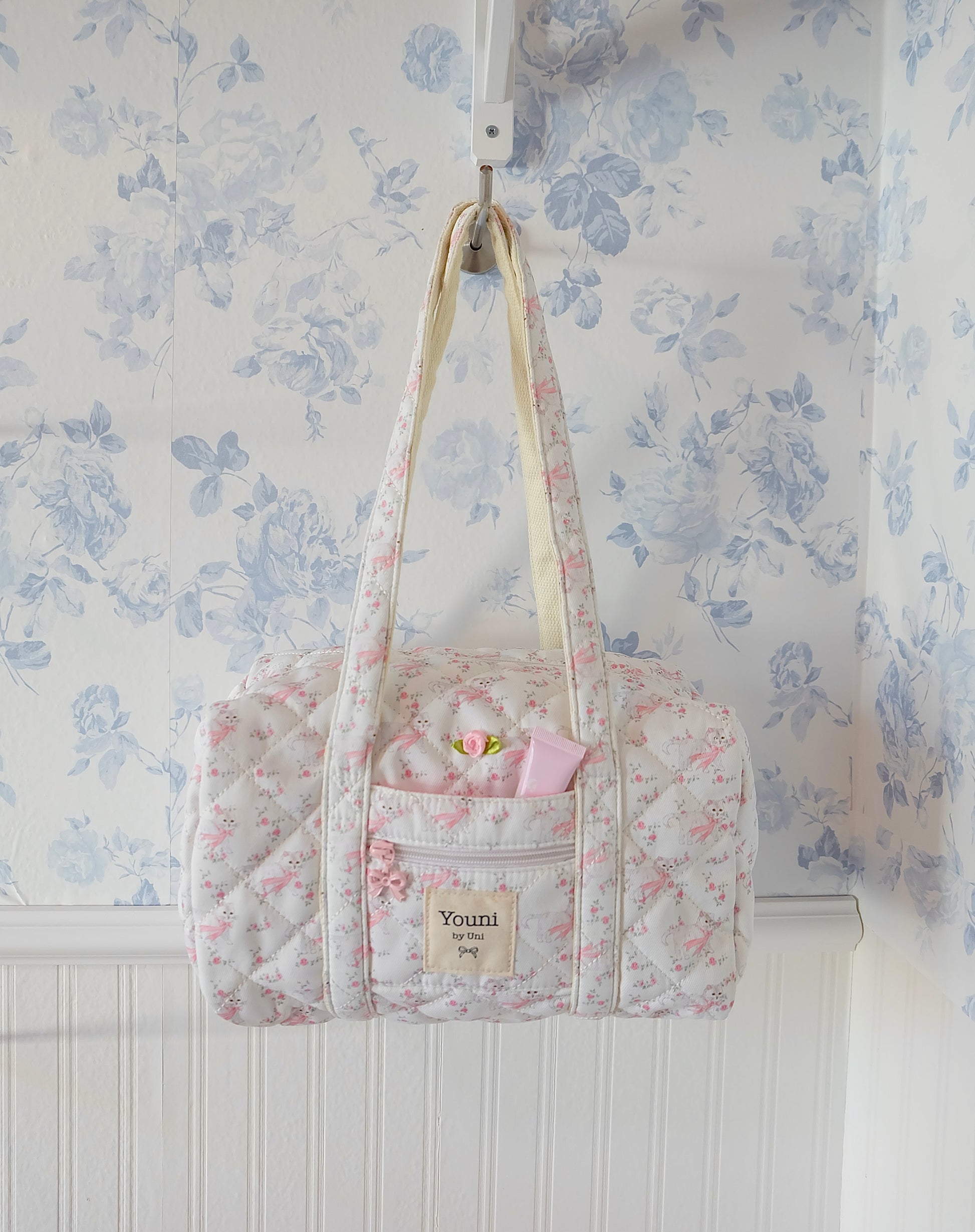 Introducing the YOUNIBYUNI Cat with Pinky Bow Handbag, a charming tote with a playful cat design and pink bow. A must-have for your bag collection.